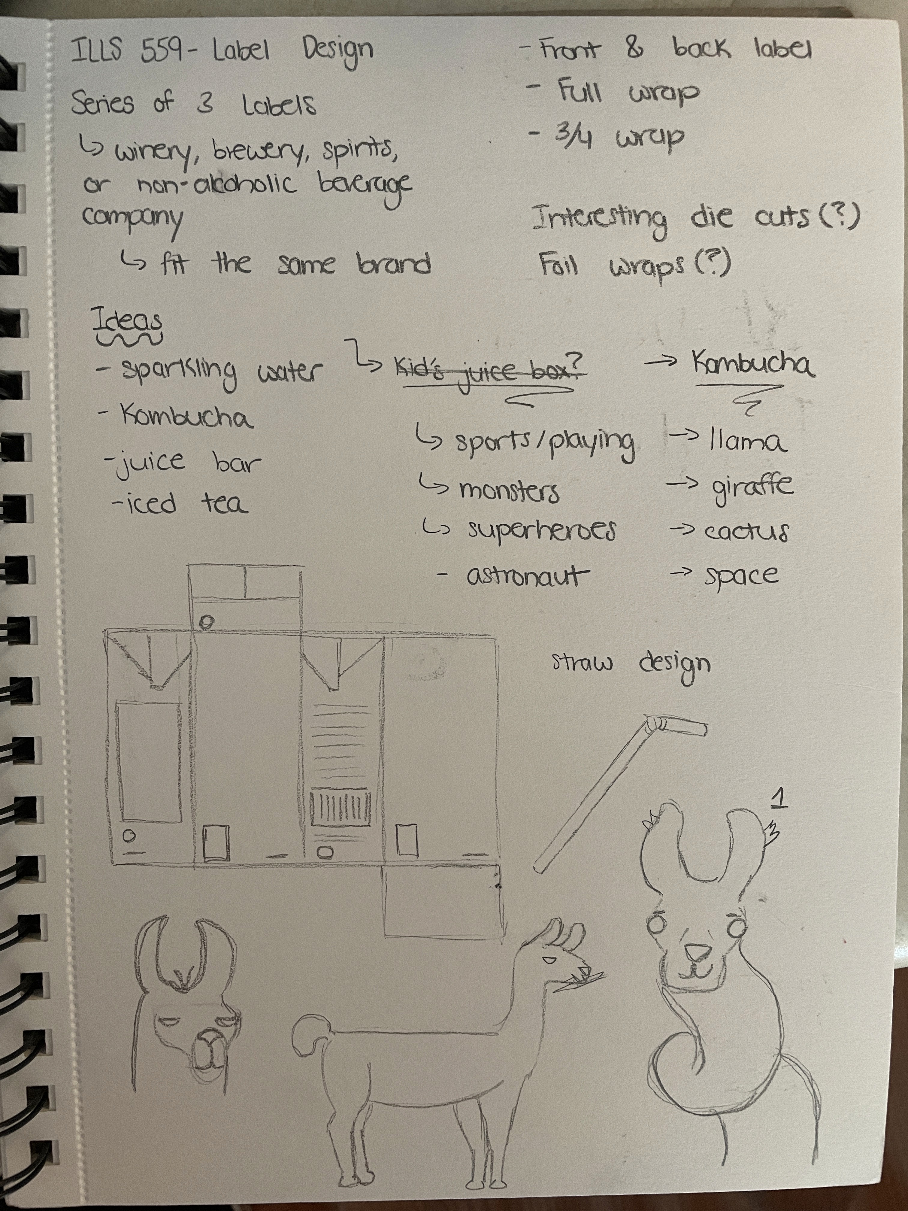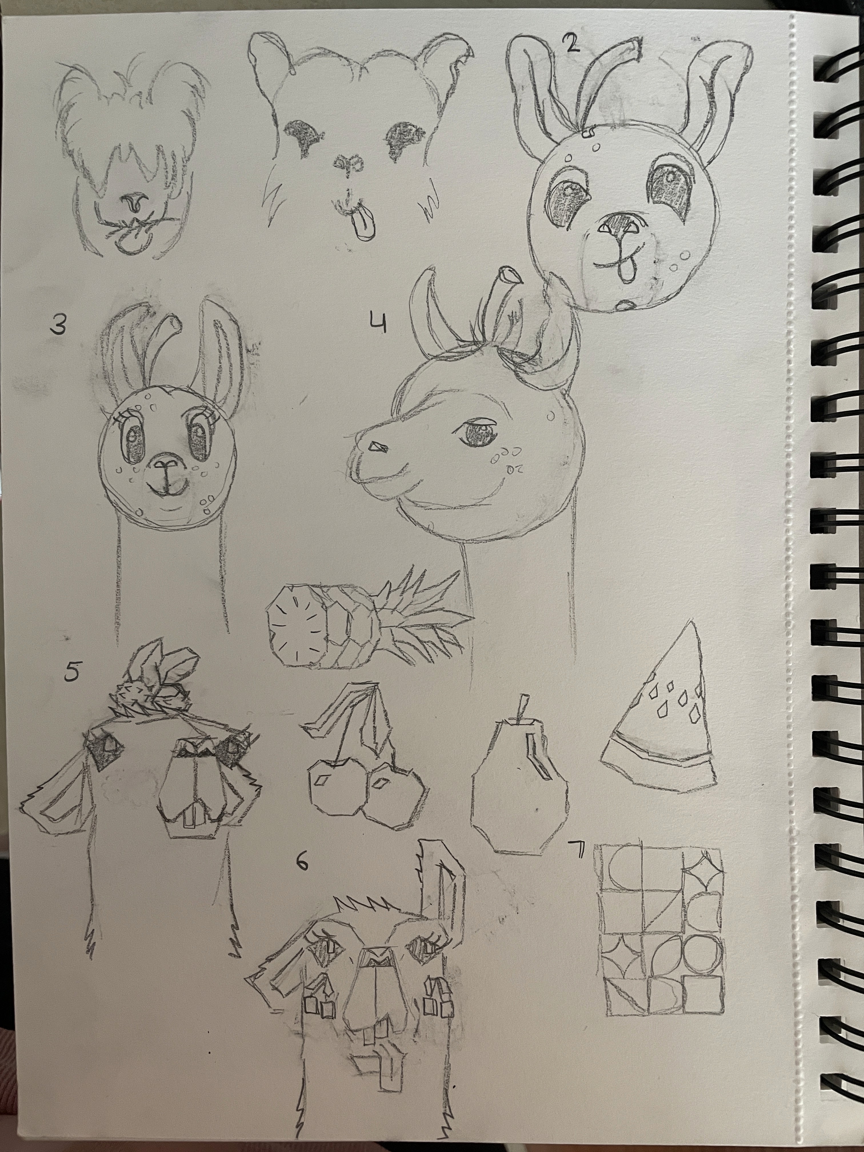 I knew I wanted a fun, eye-catching, and silly character that would be highly recognizable to the brand. I explored how to stylize the llama so that he stood out while incorporating fruit themes. I ended up really liking the more geometric look.